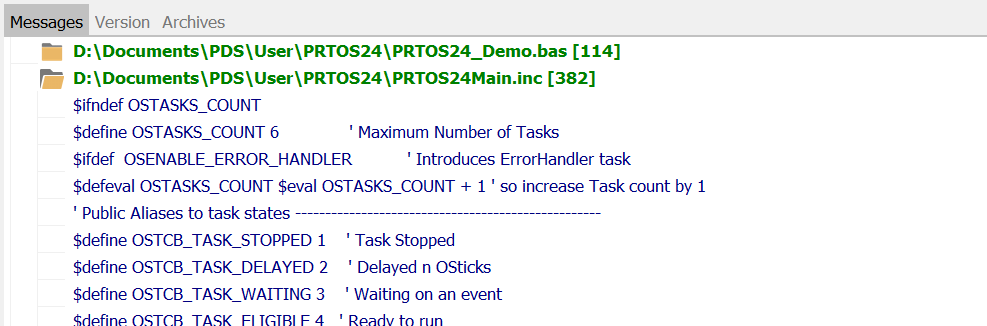 Clicking on Find will start a search through all the files files and the result will be displayed in the Messages window in a tree structure. At the top level grouped File Names names will be listed of all the files which contained a Match. Expand the individual search items by clicking on the file entry.