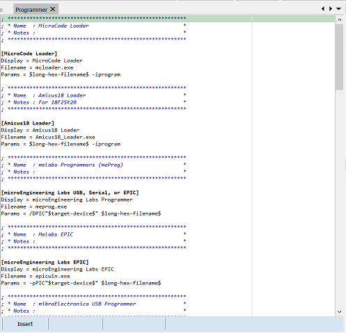 The Text Editor carries over many of the features of the Source Code editor. Bookmarks and Keyboard short cuts and the Clips List are all available in the Text editor. For certain file types the text editor is provided with a highlighter. These include: .ini, .ppi files - Ini Highlighter .def files - Positron Highlighter Shown is an ini file showing highlighting being applied |